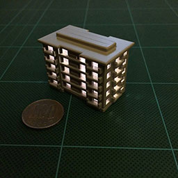 ガシャポンのアパートとウルトラマン。背景はPCの画面に映し出した夜景のビル群の画像です。モデルがいいのでそこそこ絵になります。
