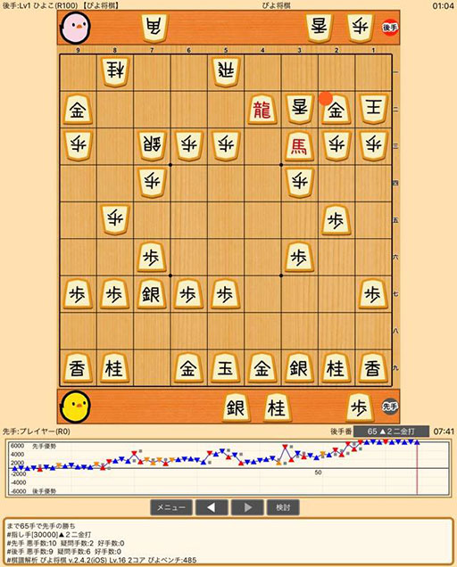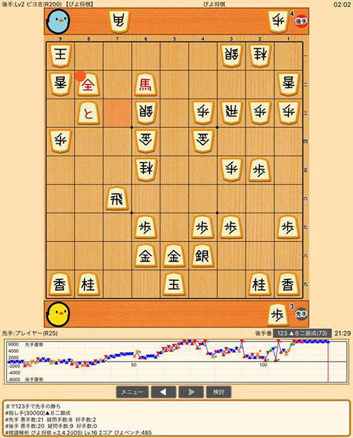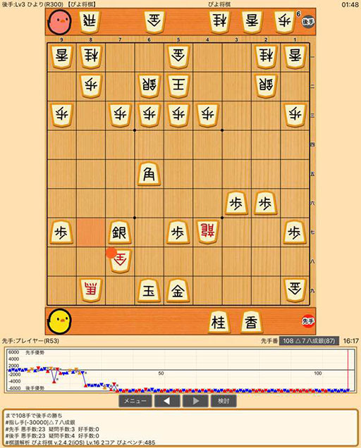 ぴよ将棋 プレイヤー(R45) 対 Lv3 ひより(R300)