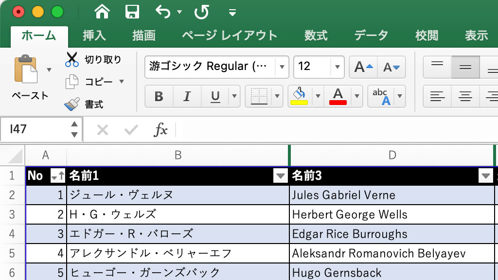 ExcelでSF作家をテーブルにしてみました。(海外89人、別シートで国内52人)