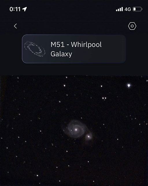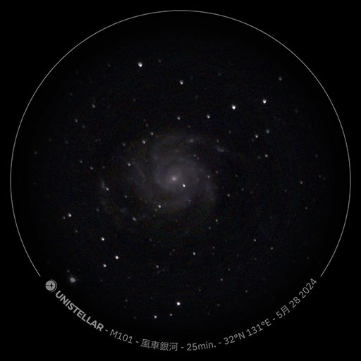 雨があがり、風が強く、寒さも少し覚えましたが深夜の時間帯にeVscope2で深宇宙観望をしました。おおぐま座の方向、約2180万光年先にある風車銀河……まったく気が遠くなる距離です