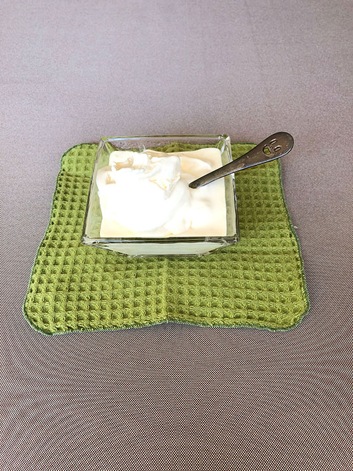 材料:卵黄1個、生クリーム100ml、砂糖40g、牛乳80ml、バニラエッセンス3、4滴
