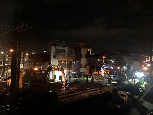 妙ちくりんな夢からさめて、まだ暗い夜明け前、JR九州鹿児島本線の工事を見学