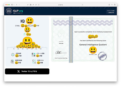 小学校に上がる前に、こんな感じのテストをやらされた覚えがあります。それ以来となりますが、昨日〔IQJP.org〕でIQのテストを受けてみました。